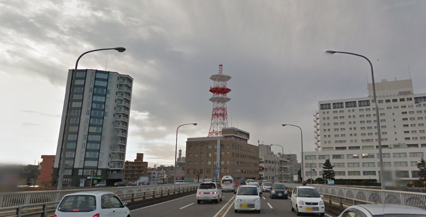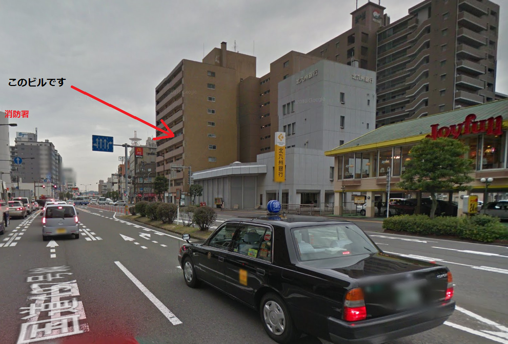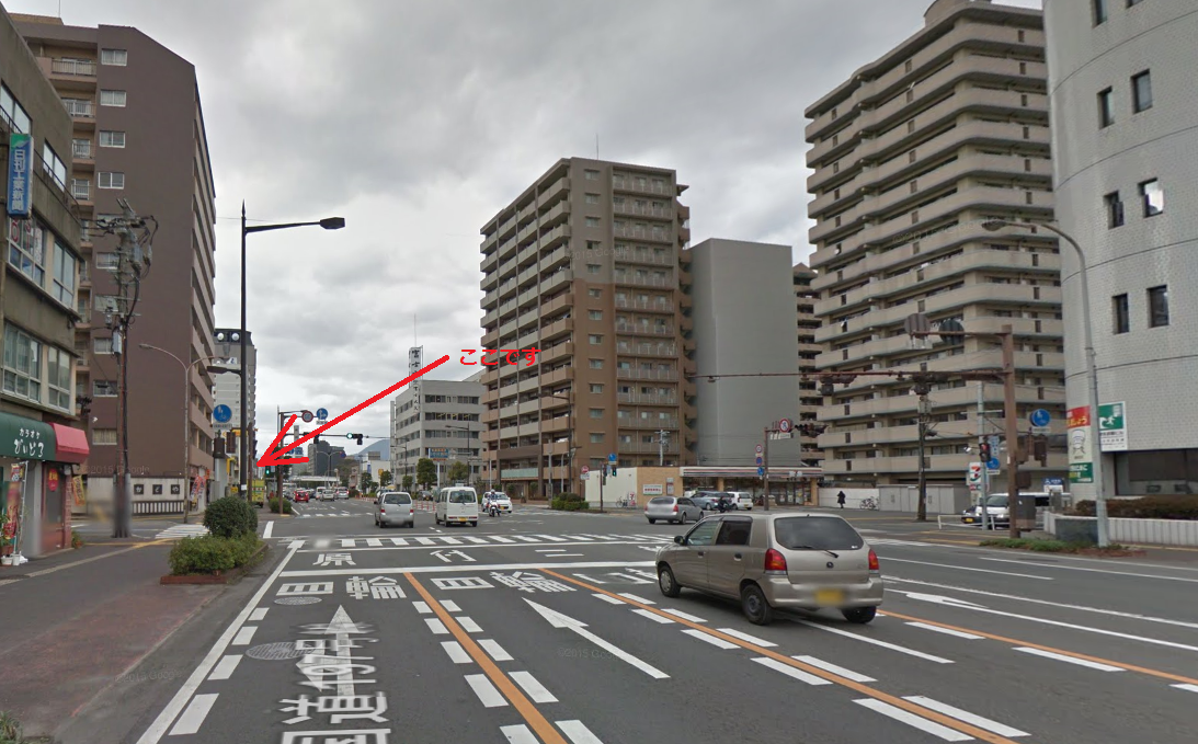 右手は大分県庁 ここから300m 矢印のビルが皐月マンションです。