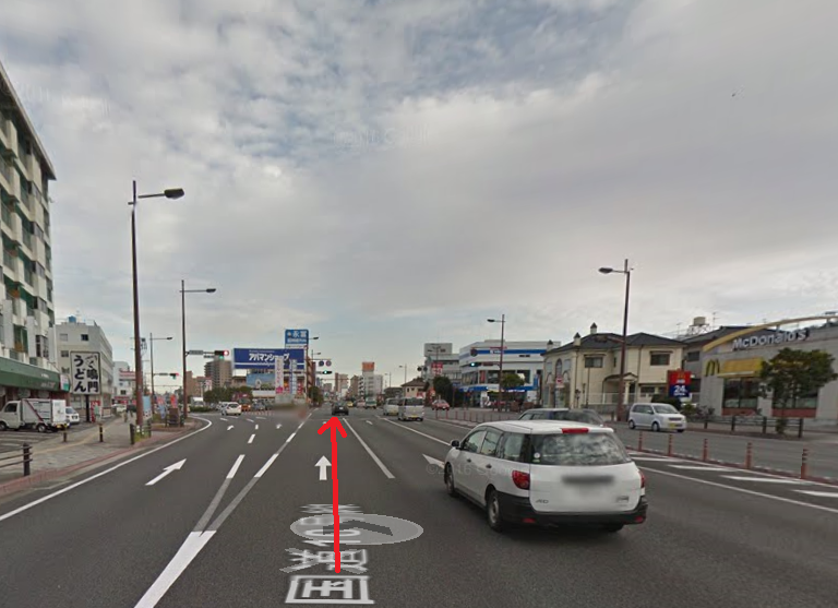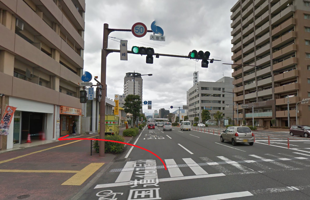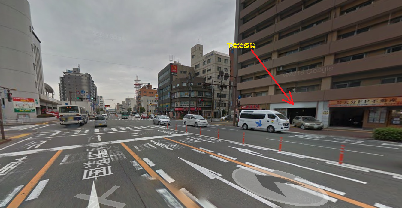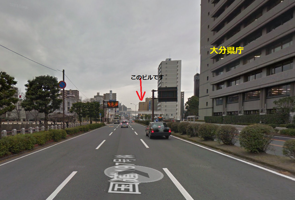 国道197号線を直進 左手に大分市役所、右手に大分県庁が見えます。