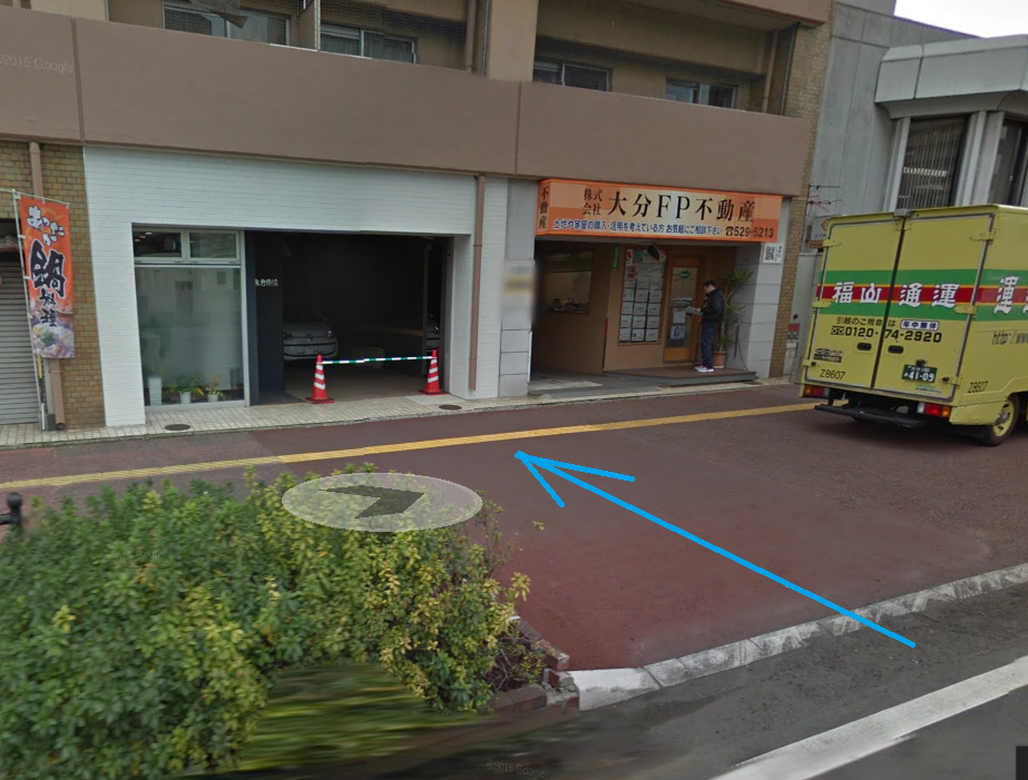 到着です。歩行者に気をつけてそのまま前から入ってください。